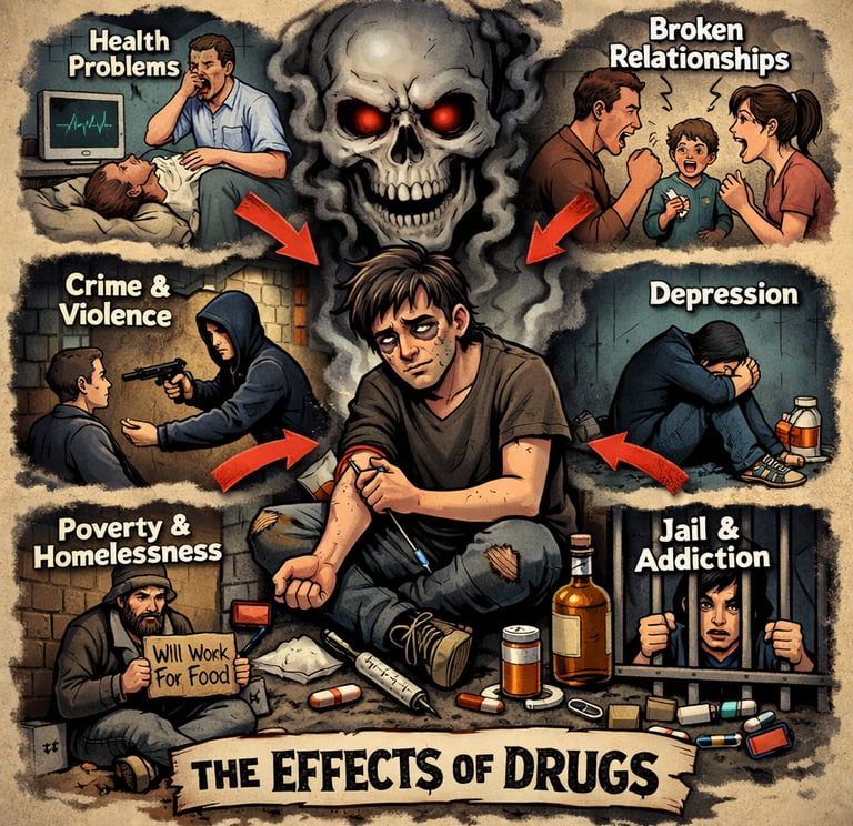 Drug and Alcohol use, showing their dark side.